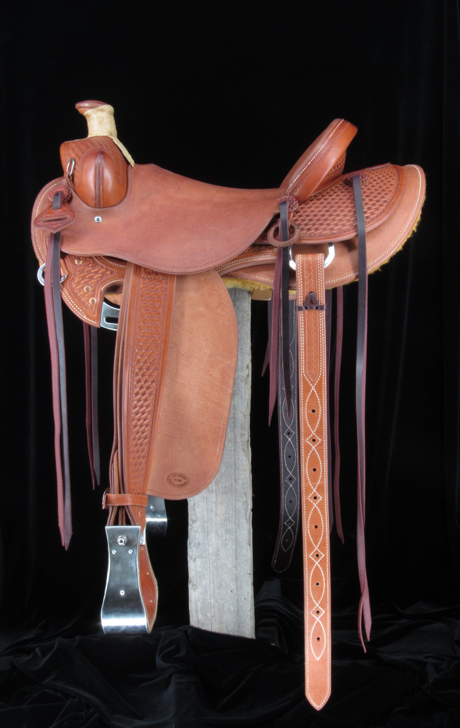 Hand braided from local cow hides processed entirely by us.