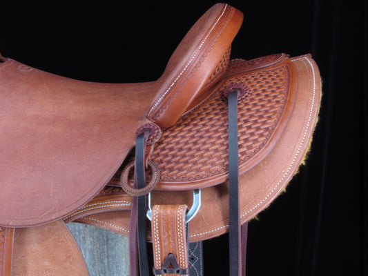 Tooled Slit Ear Headstall with Stainless Steel and Copper Buckle Set
