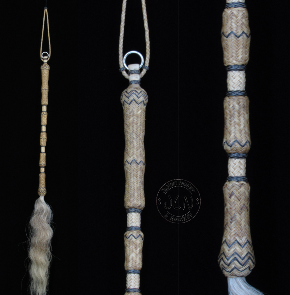 In 2015 she was able to begin to learn the process of taking a fresh cowhide through the curing and cutting stages and then braiding the resulting strings into finished pieces. She has continued to hone her skills in this craft., helped along by many of the top braiders in the industry. This hard and exacting process continually provides her with fresh challenges which she finds very satisfying.
