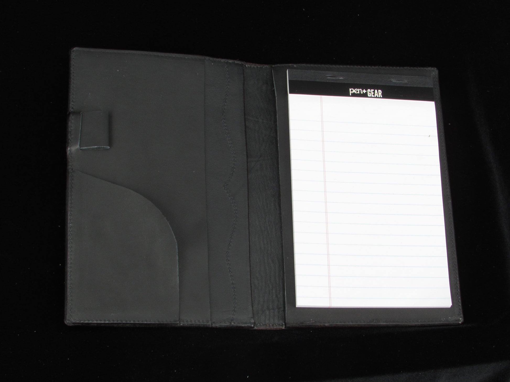 Enhance your note-taking experience with our Border Tooled Jr Legal Pad. The split cover type provides durable protection, and extra pockets keep your important documents organized. Complete with a pen loop, you'll never have to search for a writing utensil again while on-the-go. Perfect for professionals and students alike.