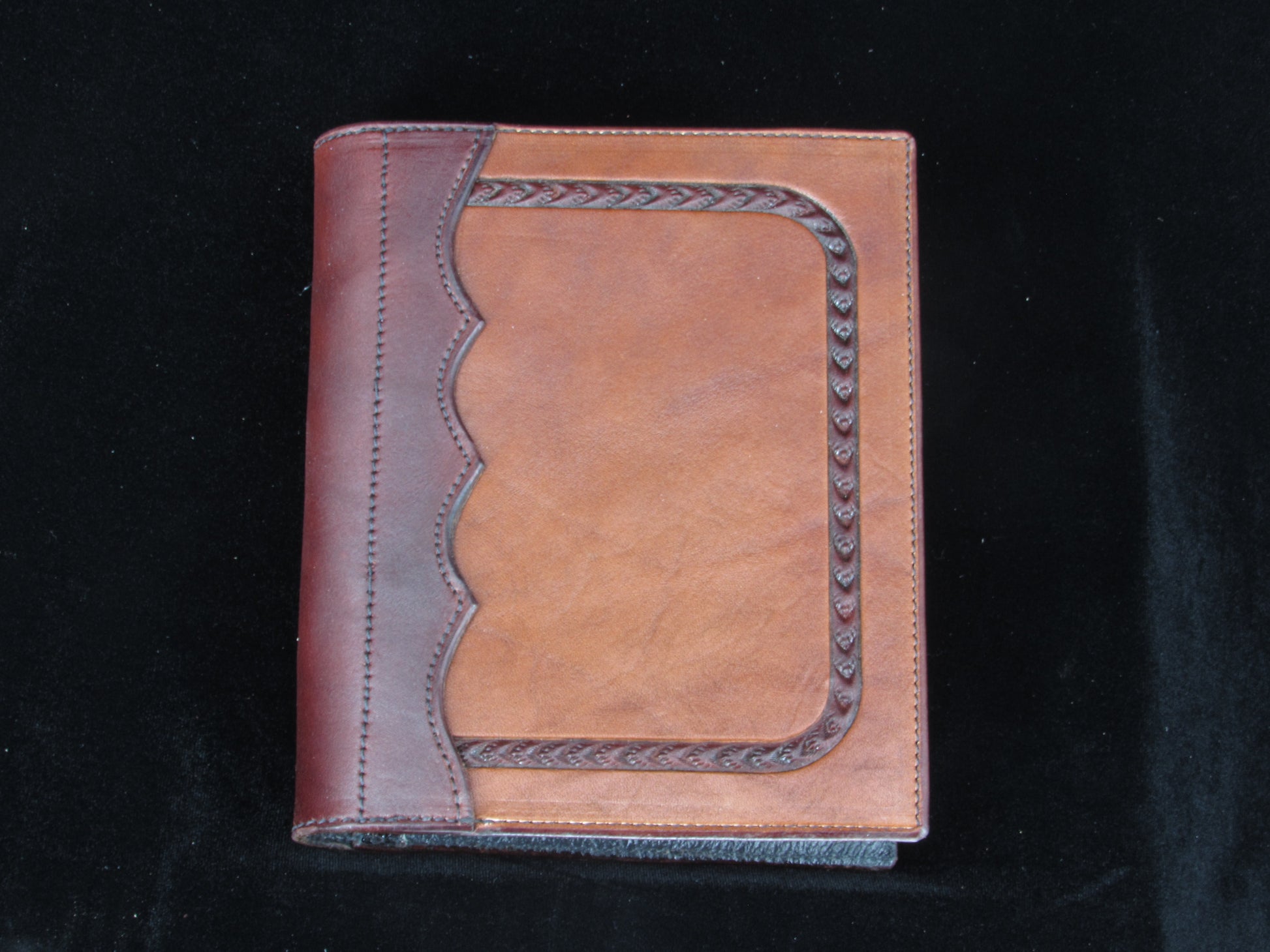 Expertly crafted with intricate border tooling, the Border Tooled Small Notebook is a must-have for any note-taking or journaling needs. Its split cover style design adds a touch of elegance while the included 5"x 7" spiral notebook and extra pockets offer practicality and convenience. Perfect for staying organized on the go.
