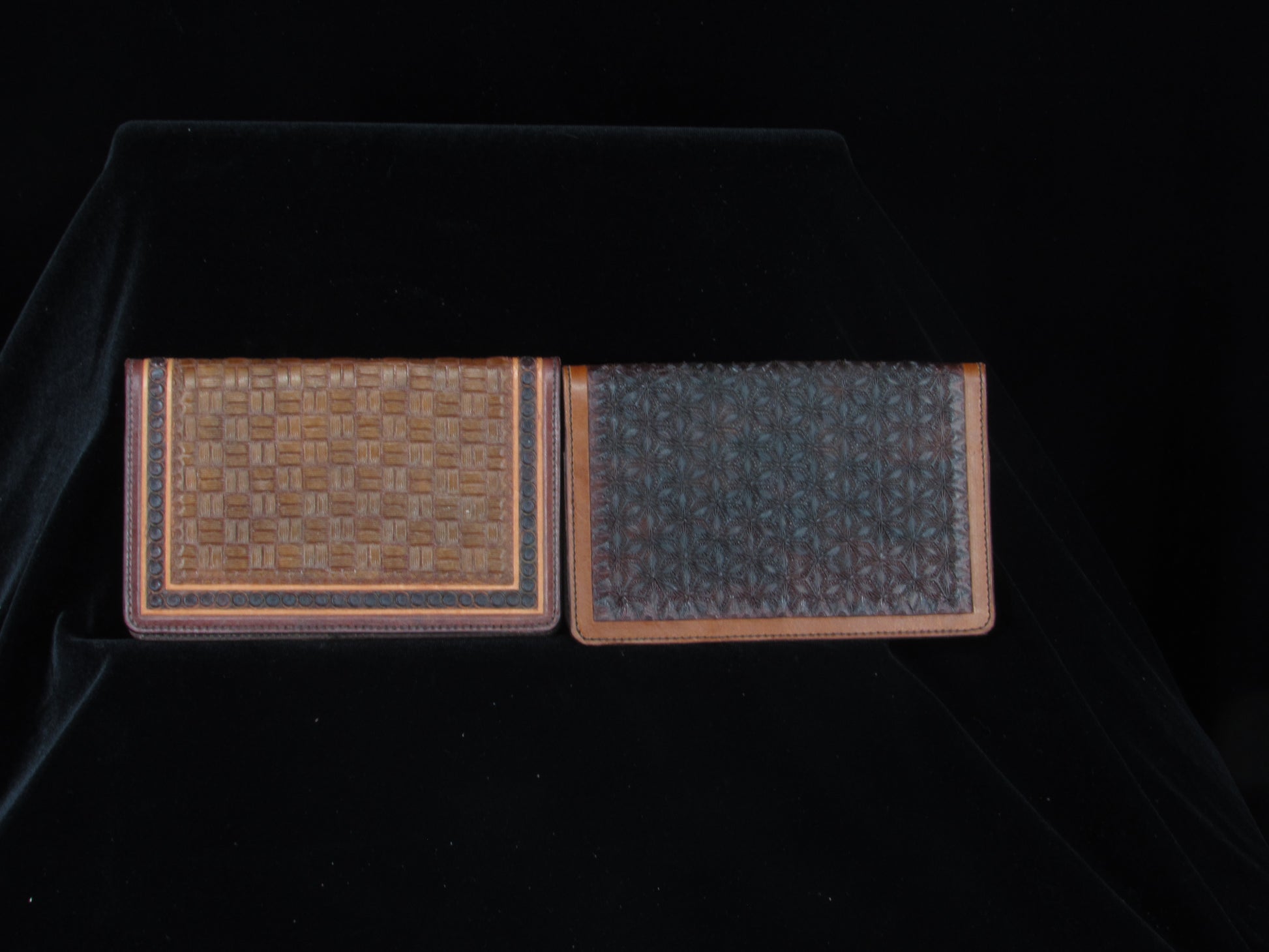These Business Sized Checkbooks are designed to fit business sized checks with ease. Each checkbook features a unique hand-tooled design and is lined with high-quality leather for a professional and sophisticated look. Keep your checks organized and make a statement with these stylish checkbooks.