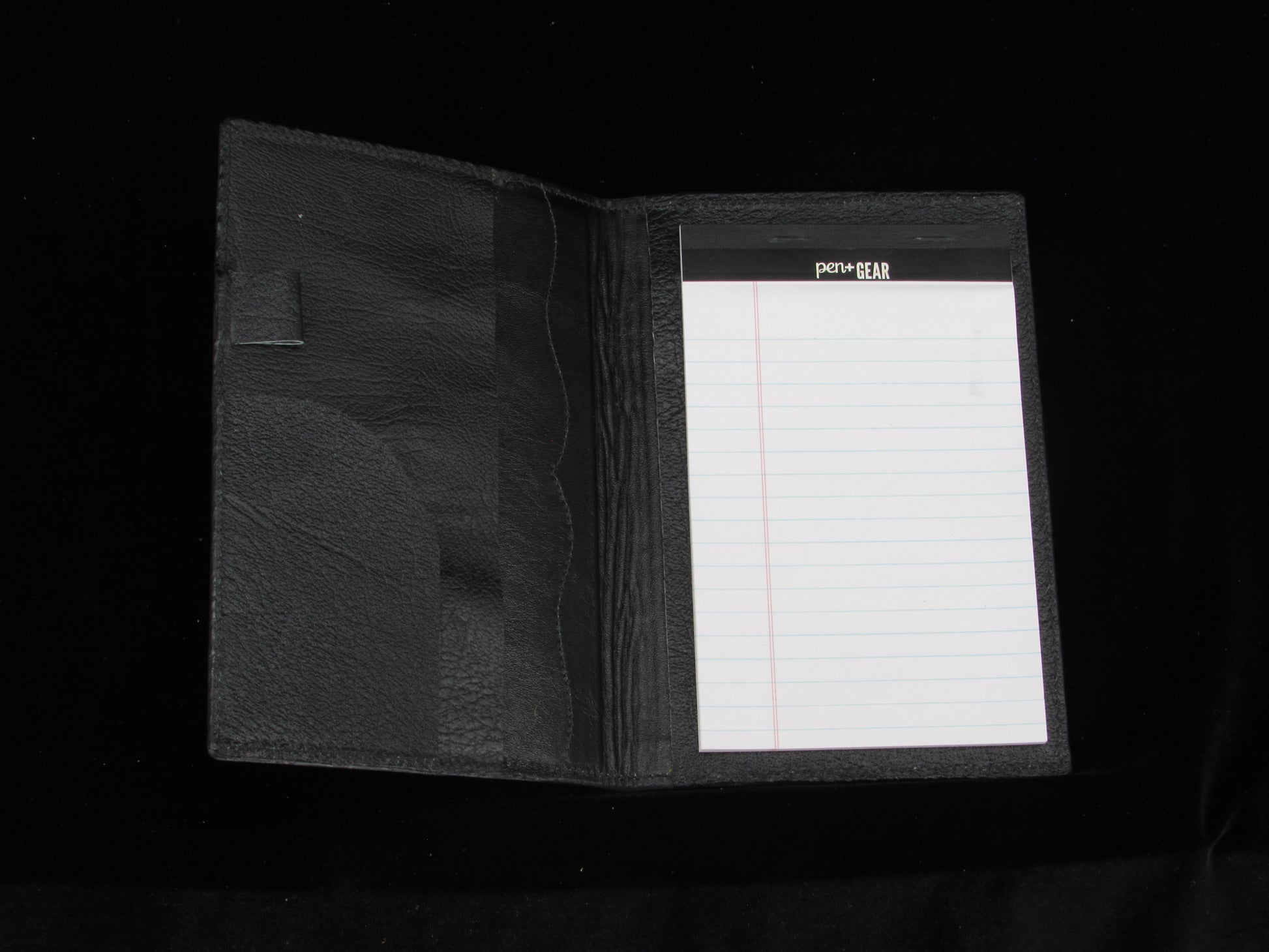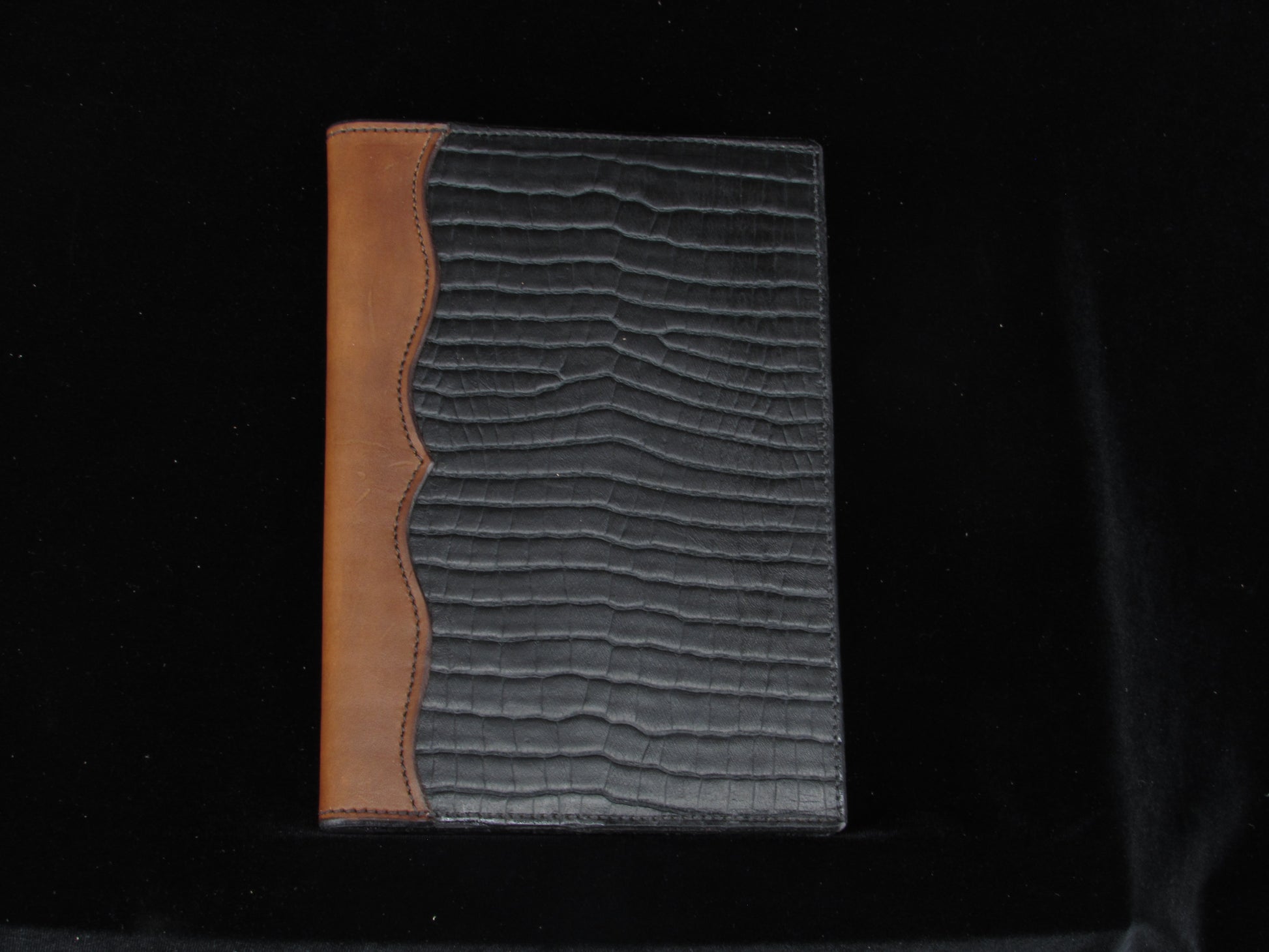 Introducing our Embossed Jr Legal Pad, crafted with a luxurious vintage black cowhide. The unique exotic print adds a touch of elegance. Stay organized with extra pockets and a convenient pen loop. Upgrade your notetaking experience with this stylish and functional pad.