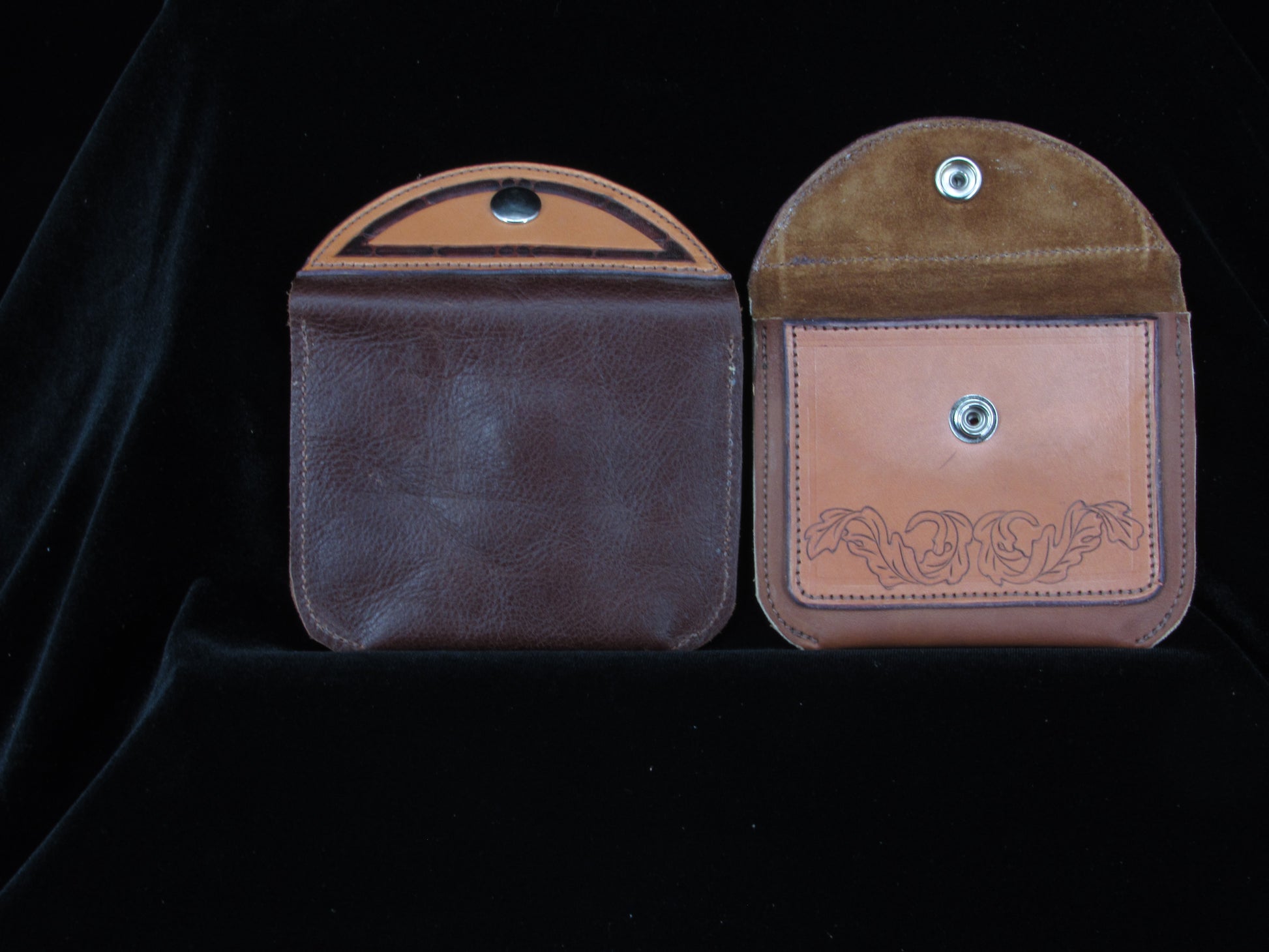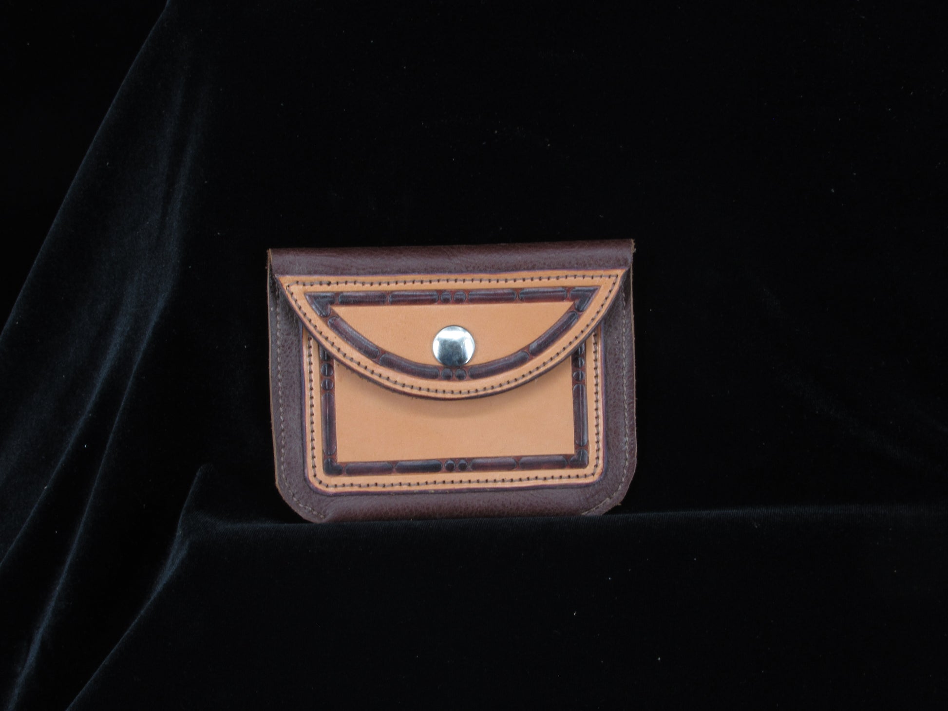 Keep your coins safe and stylish with our Leather Coin Purse! Measuring 4" high by 5" wide, this purse features a snap closure and tooled front accents that add a touch of charm. Never lose your change again!