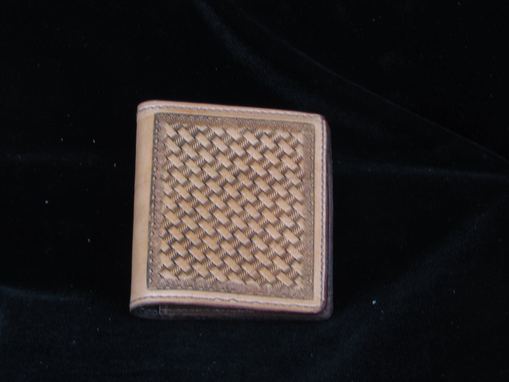 Expertly crafted with a basket stamped design, this bi-fold wallet boasts a functional interior flap that conceals a secure money clip, along with three card pockets for added convenience. Keep your essentials organized and easily accessible with this professional and stylish wallet.