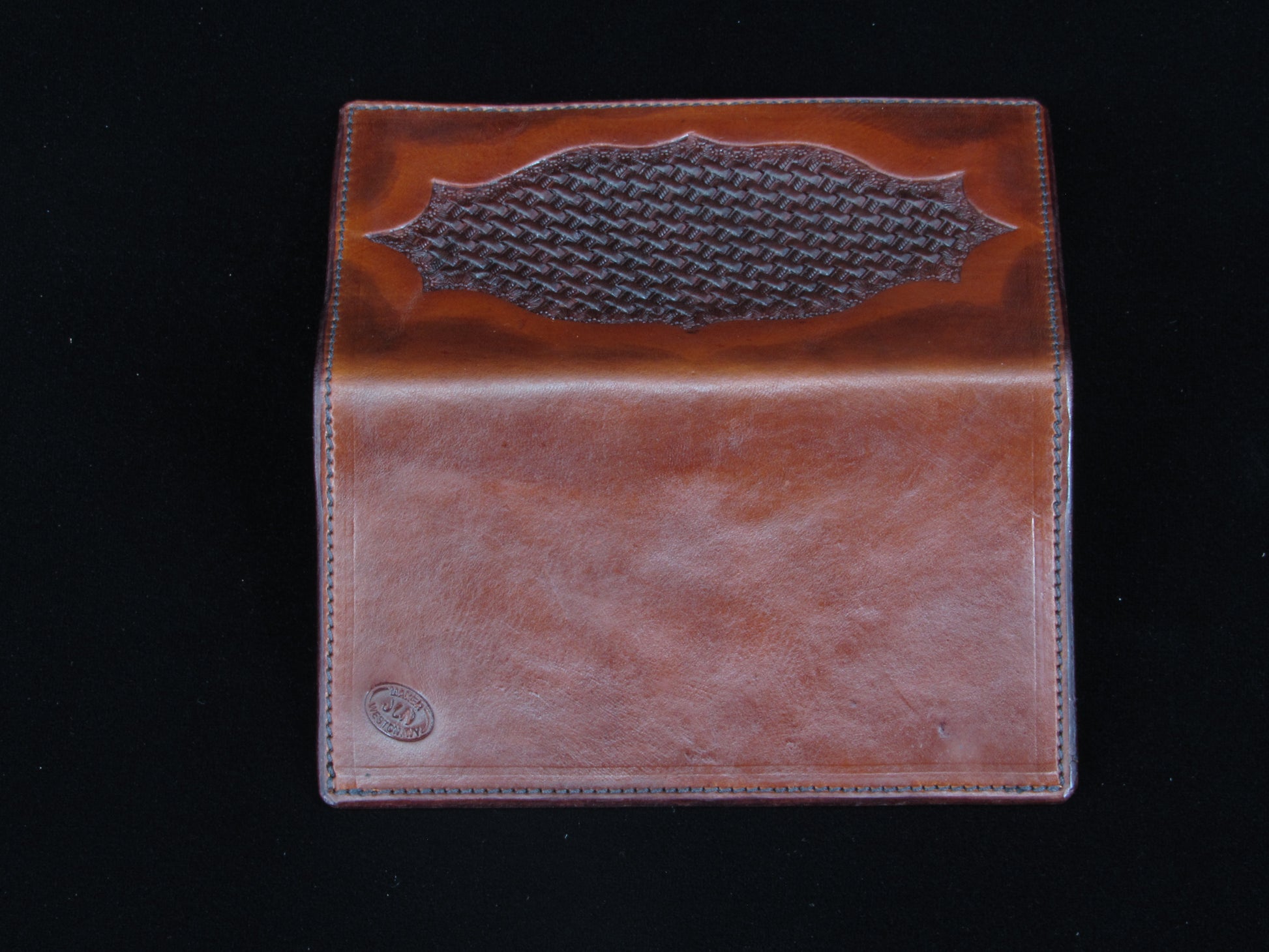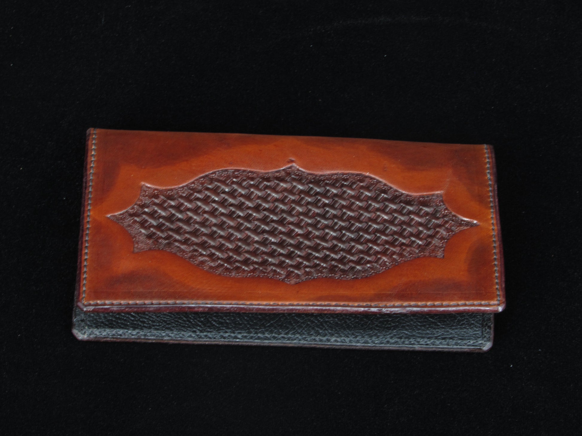 This Tooled Leather Checkbook Cover boasts a stylish leather design on the front, while providing practical functionality for your financial needs. Its inside pockets and tabs effortlessly organize your checks and register, making it an essential accessory for any check writer. Fits standard top tear checks.